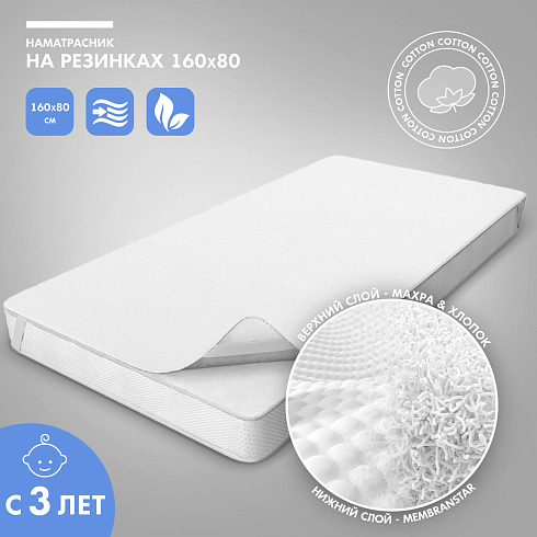 Нижний слой представляет собой мембранное полотно — «дышащую» пленку с односторонней влаго- и воздухопроницаемостью. Слои наматрасника прочно соединены между при помощи способа горячей фиксации Hot-Melt, при котором не требуется применения клея. Хорошая воздухопроницаемость полотна не создает «парникового эффекта» и идеально поддерживает естественную терморегуляцию тела ребенка. Влагостойкая мембрана полностью защищает от протекания и ускоряет срок высыхания наматрасника.