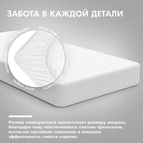 Антибактериальная пропитка ткани снижает риск появления неприятного запаха и является гипоаллергенной, что позволяет применять изделие для всех без исключения детей. Края наматрасника имеют аккуратную обработку. Фиксирующие резинки пришиты с применением специальных трикотажных швов.